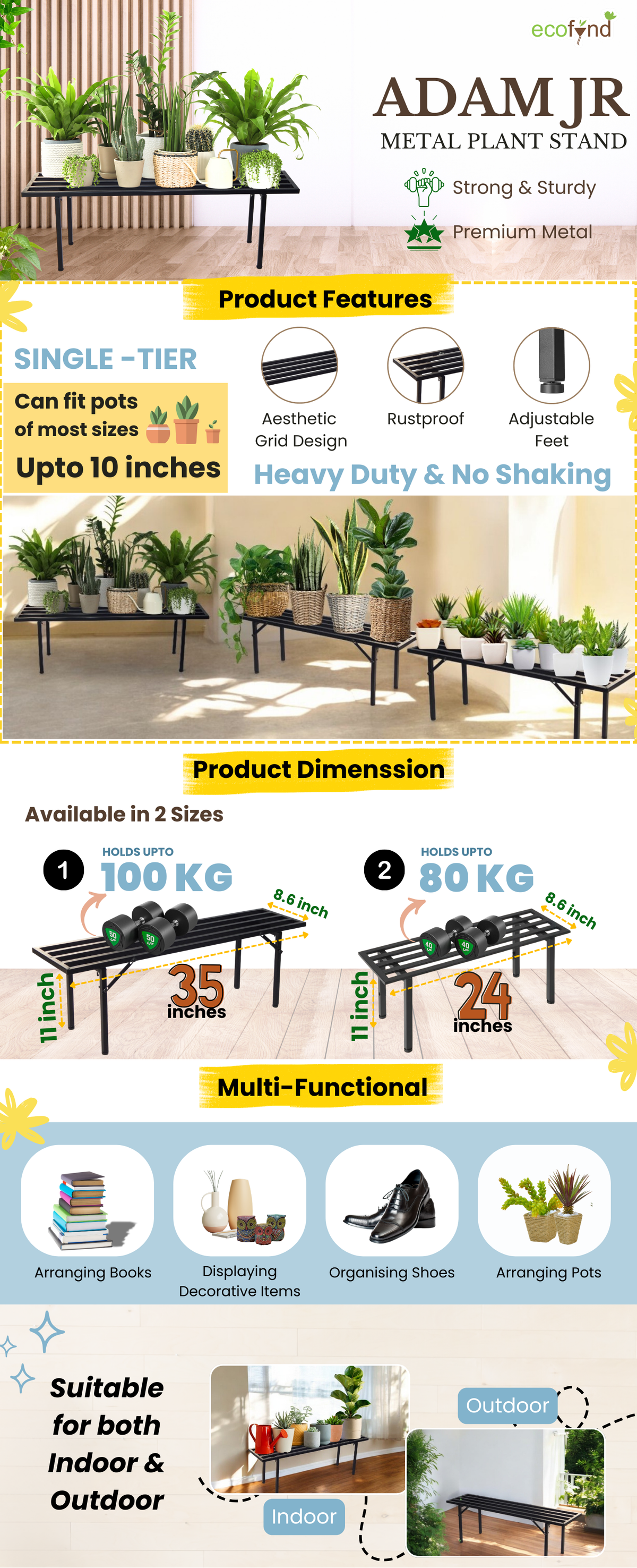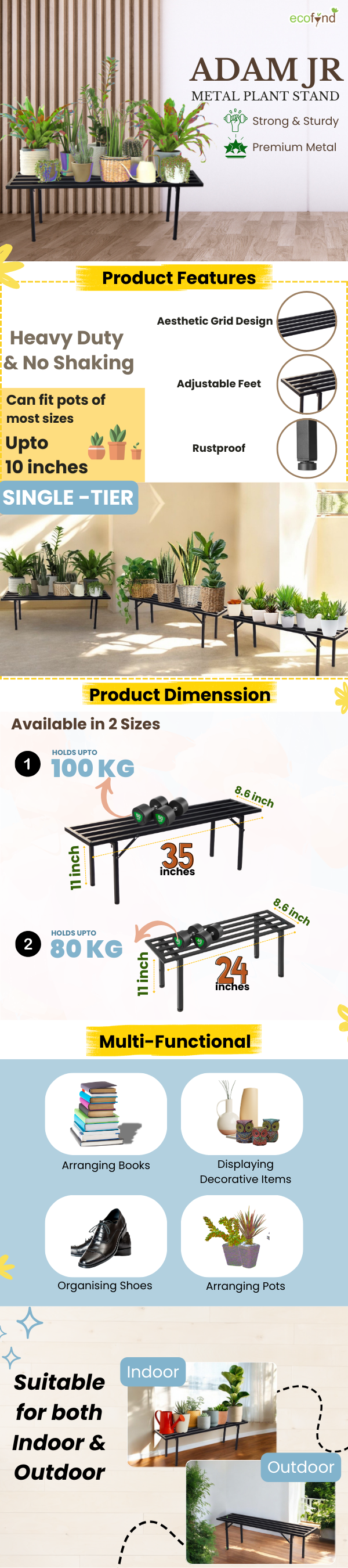 Elevate your plants and décor with the Ecofynd Adam Jr Black Plant Stand, a compact yet strong display solution for modern homes. Crafted from premium powder-coated iron, this versatile stand is built to last—combining sleek design with heavy-duty performance for both indoor and outdoor use.