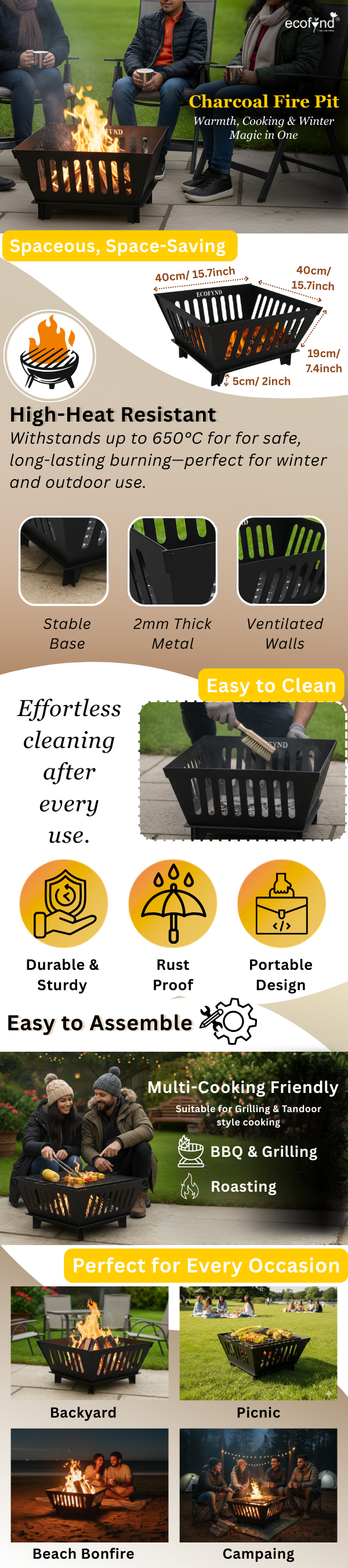 Create unforgettable outdoor moments—whether it’s a cozy bonfire, camping night, or festive BBQ, this portable fire pit ensures comfort, convenience, and modern style wherever you go.