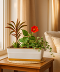 The Ecofynd plant pot, with its sleek rectangular design, complements any modern decor. Crafted from durable, rust-resistant metal with a stylish finish, it’s perfect for a variety of indoor plants. Easy to maintain with a drainage hole to prevent root rot, it also doubles as a versatile decor piece, serving as a chic centerpiece, bookshelf accent, or storage solution, enhancing any room's elegance and functionality.