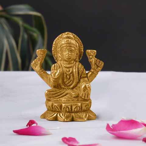 Brass Goddess Lakshmi Pair Idol – Golden Antique Puja Decor by Ecofynd