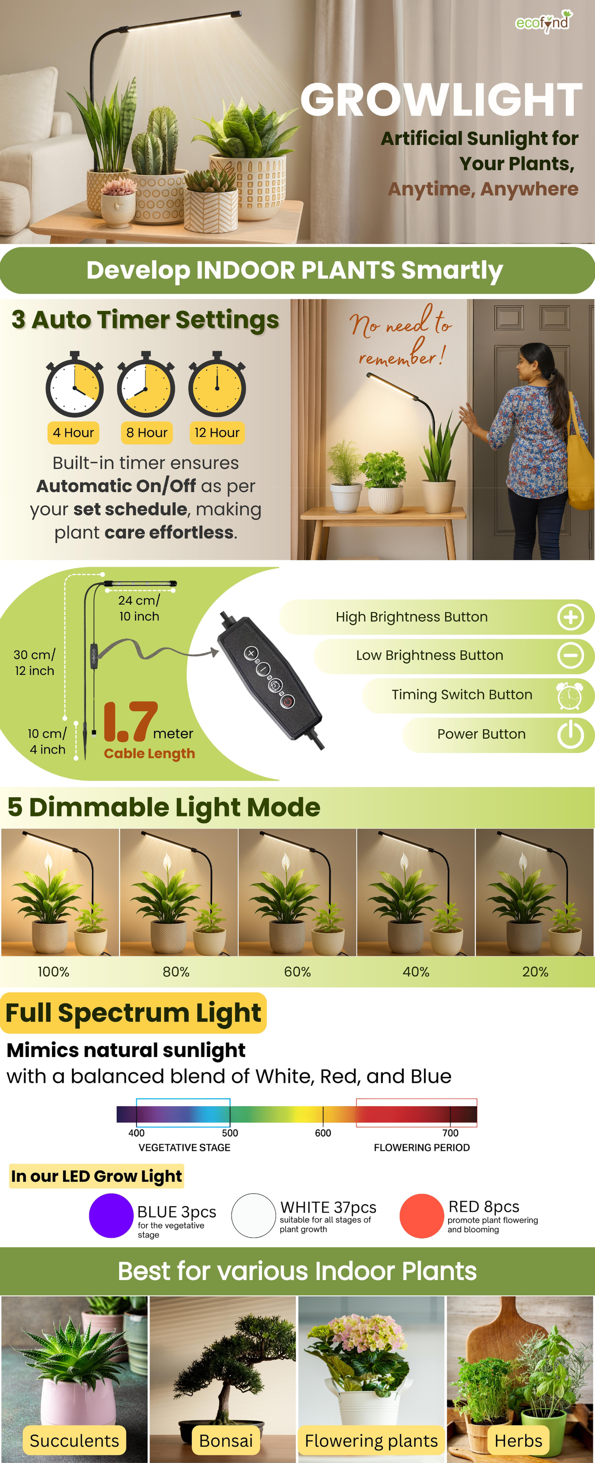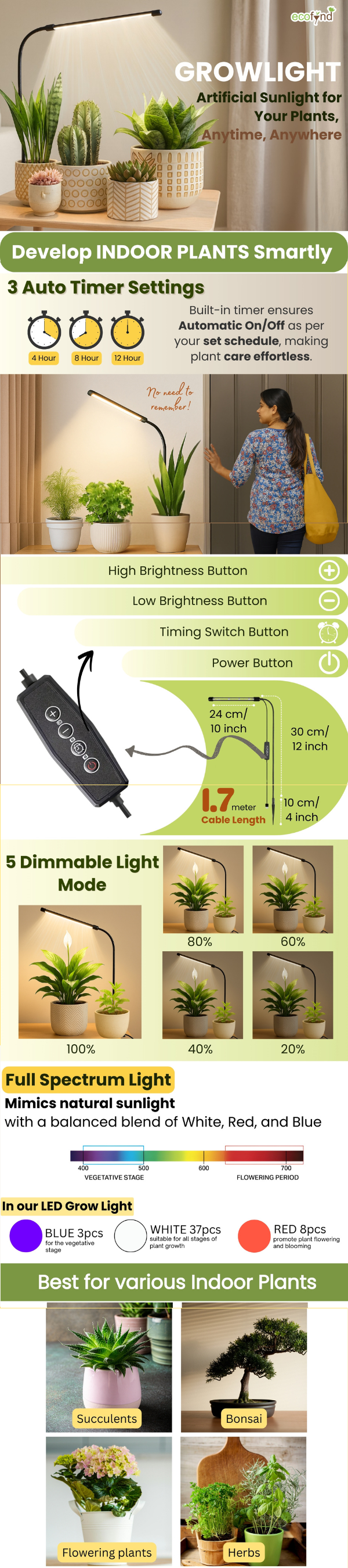 Kaira Grow Light for Indoor Plants, 4/8/12 Hrs Auto On/Off Automatic Timer