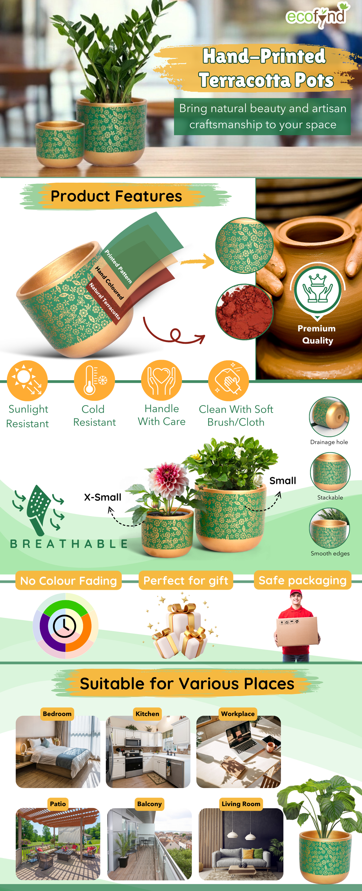 Ecofynd began with a simple idea: to blend nature with home decor. From planters to macrame hangers, our handcrafted products, made in Aligarh, bring a touch of green into urban homes. We’re here to help you create beautiful, sustainable spaces where nature thrives.