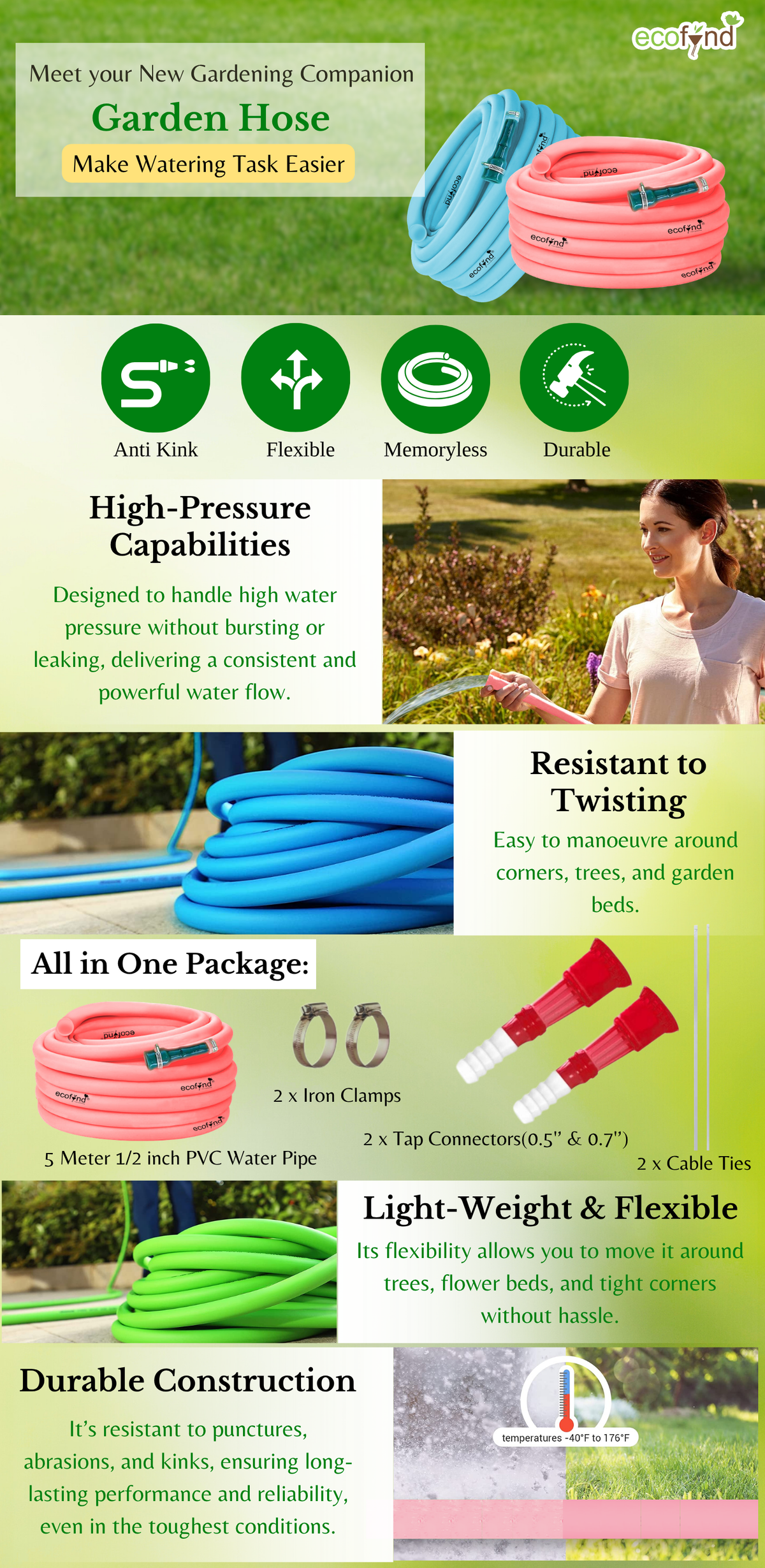 Crafted from eco-friendly, high-quality PVC, this flexible pipe roll is lightweight yet resilient. Its vibrant pink color enhances visibility while bringing character to your toolkit. Available in convenient roll formats, it’s easy to cut, install, and use. Looking for a practical yet surprising gift? This UV-resistant water pipe is a smart choice for any gardener, new homeowner, or DIY enthusiast. Ecofynd brings together beauty, durability, and performance—one flow at a time.