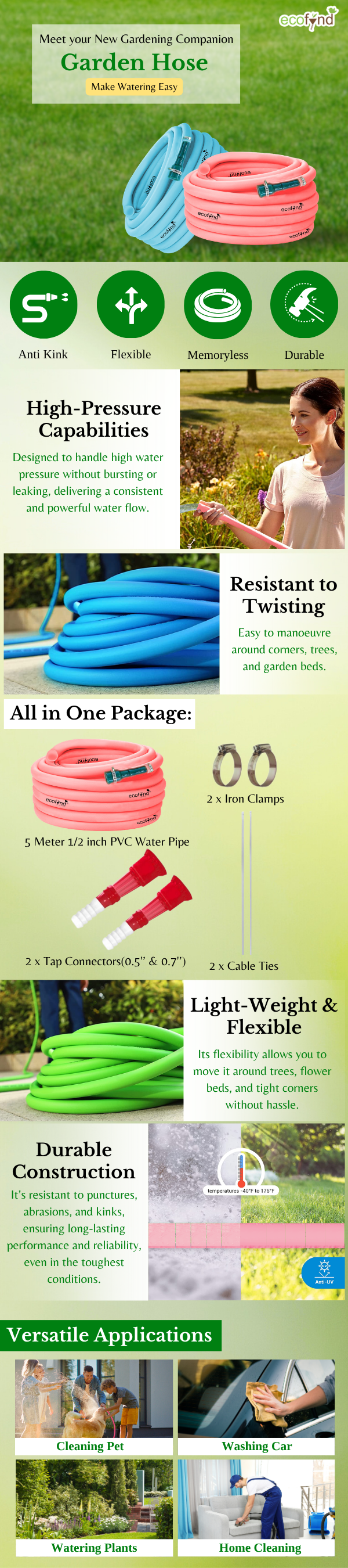 You need this pipe because it's built for today’s fast-paced, multitasking lifestyles. Unlike traditional hoses, the Ecofynd Plumbing Hose is designed with UV resistance, corrosion-proof technology, and flexibility that tackles tight corners with zero stress. From indoor plumbing setups to heavy-duty garden tasks, this premium PVC tubing is engineered to withstand chemical exposure, extreme weather, and everyday wear—so you can water, wash, or work worry-free.