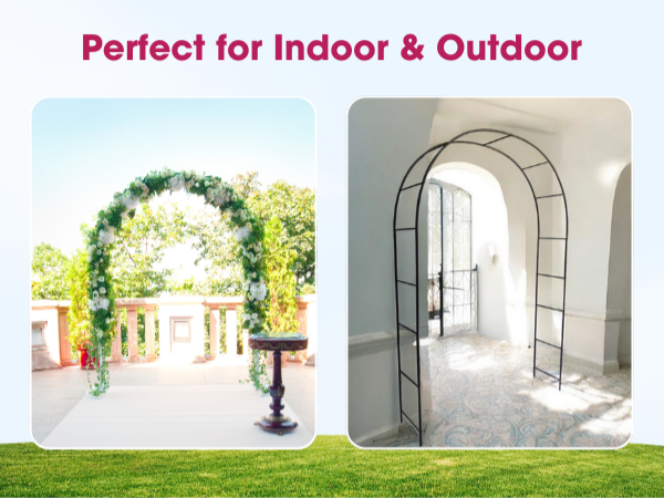 Transform any outdoor space into a natural showpiece with the Ecofynd Garden Arch Trellis — a strong, elegant frame built to showcase climbing plants and hanging blooms. Standing 8 feet high and 6 feet wide, this powder-coated metal arbor combines strength with sophistication, creating a striking centerpiece for gardens, lawns, patios, or wedding pathways.
