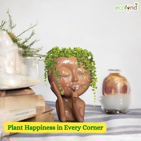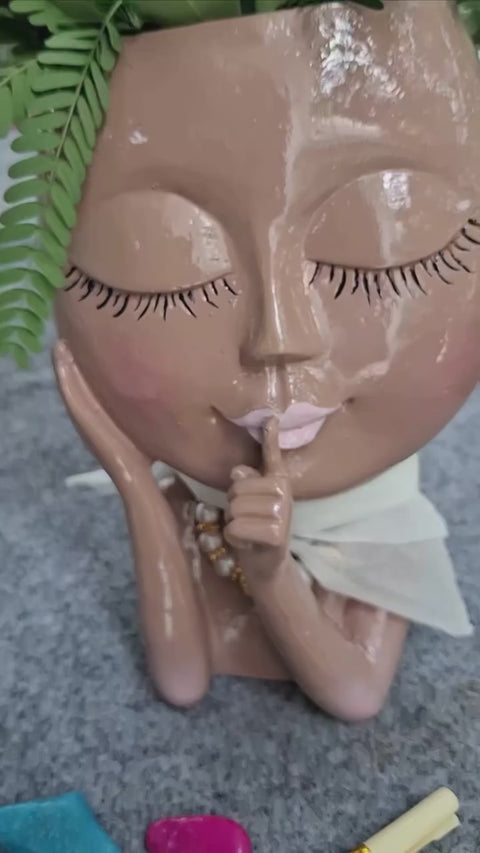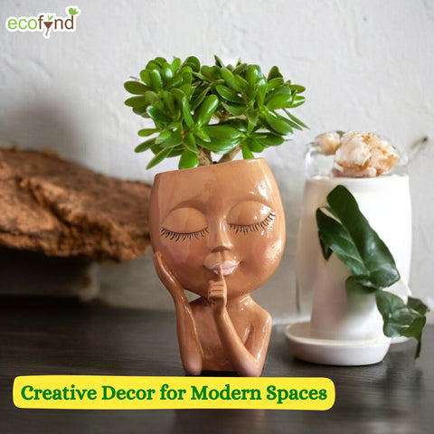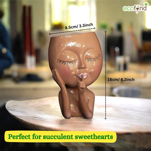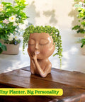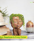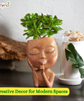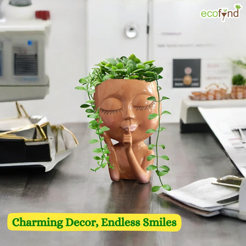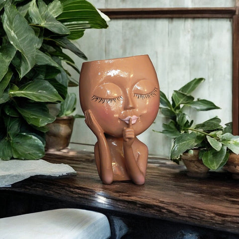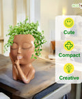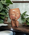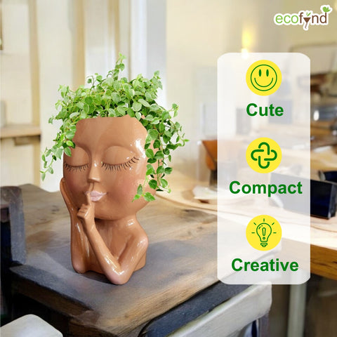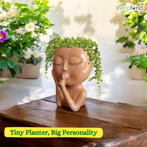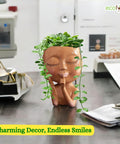 This handcrafted planter, with its unique facial details, is perfect for small spaces. Compact, lightweight, and easy to move, it’s ideal for small plants and low-maintenance. Suitable for succulents, cacti, and faux plants, it adds character and convenience to any decor.