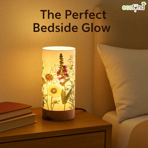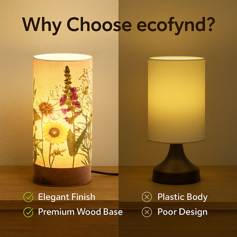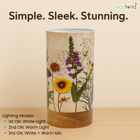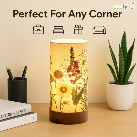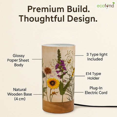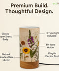 Bring warmth and charm into your space with the Ecofynd Aesthetic Table Lamp – BOHO Floral, a perfect balance of style and functionality. Designed for modern homes, this cylindrical lamp (22 cm height × 10 cm diameter) features a wooden base with a controller and a glossy paper shade that beautifully diffuses light.