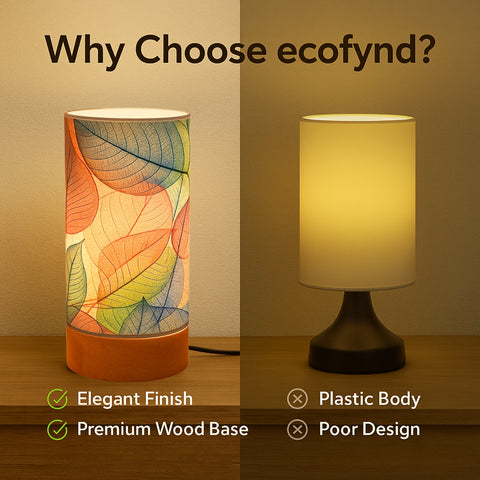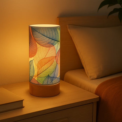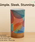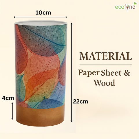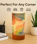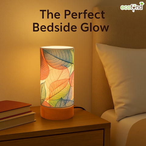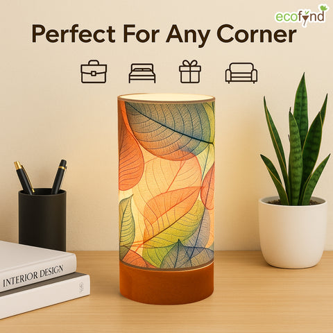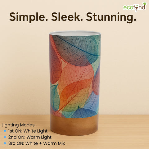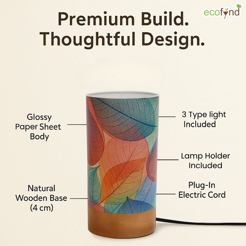 Bring warmth and charm into your space with the Ecofynd BOHO Colored Leaves Patterns Design Table Lamp, a perfect balance of style and functionality. Designed for modern homes, this cylindrical lamp (22 cm height × 10 cm diameter) features a wooden base with a controller and a glossy paper shade that beautifully diffuses light.