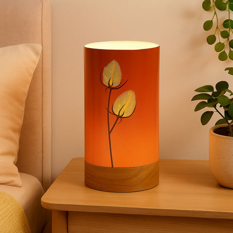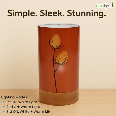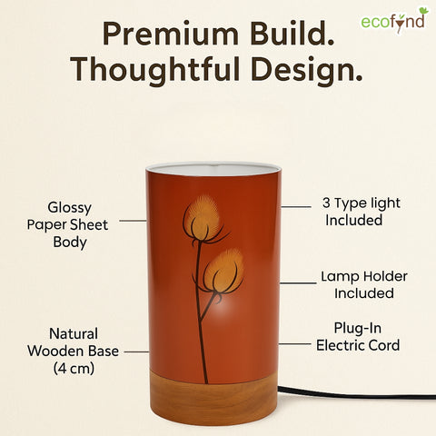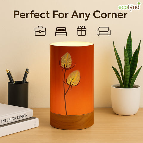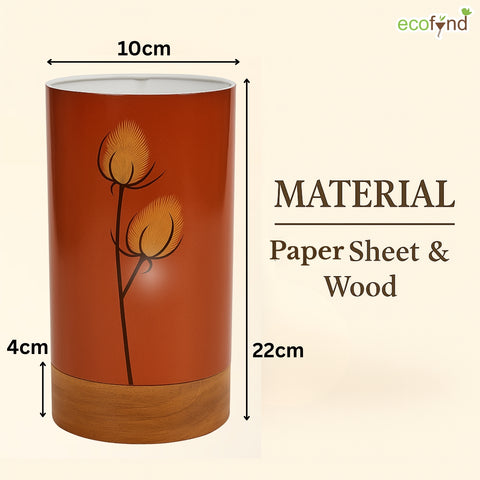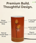 Bring warmth and charm into your space with the Ecofynd Minimalist and Elegant Stylized Plant Pattern Table Lamp, a perfect balance of style and functionality. Designed for modern homes, this cylindrical lamp (22 cm height × 10 cm diameter) features a wooden base with a controller and a glossy paper shade that beautifully diffuses light.